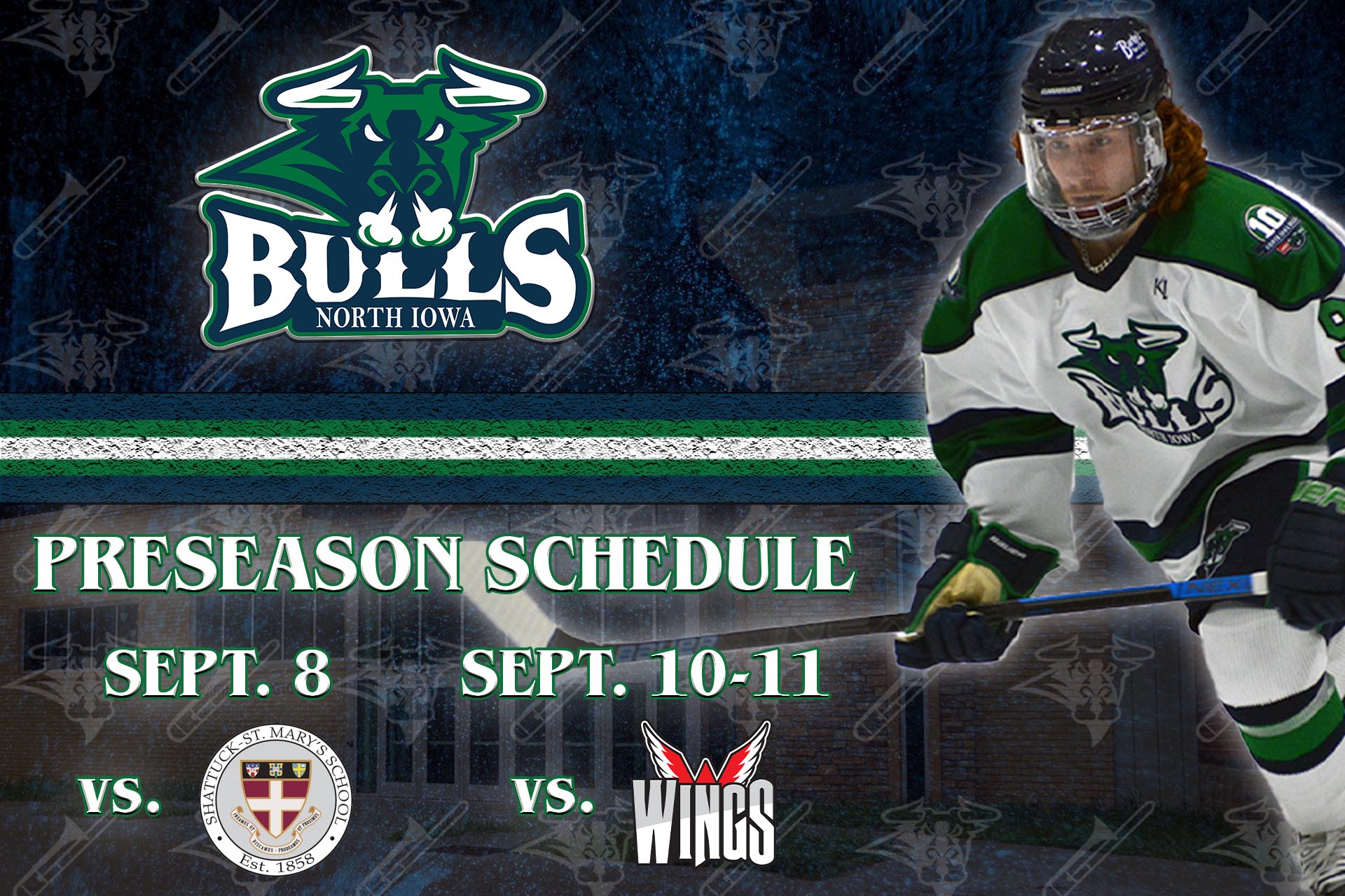 North Iowa will host three preseason games at the Mason City Multipurpose Arena, with the exhibition stretch coming over a four-day span from September 8 to 11. In that time, Bulls fans will get a chance to see one of the nation’s top prep hockey powerhouses, followed by the defending Robertson Cup runner-up just a couple of days later.