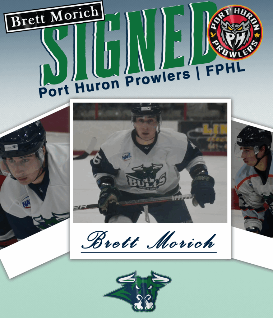 North Iowa Bulls alumnus forward Brett Morich signed a contract to play professional hockey for the Port Huron Prowlers of the Federal Prospects Hockey League.
