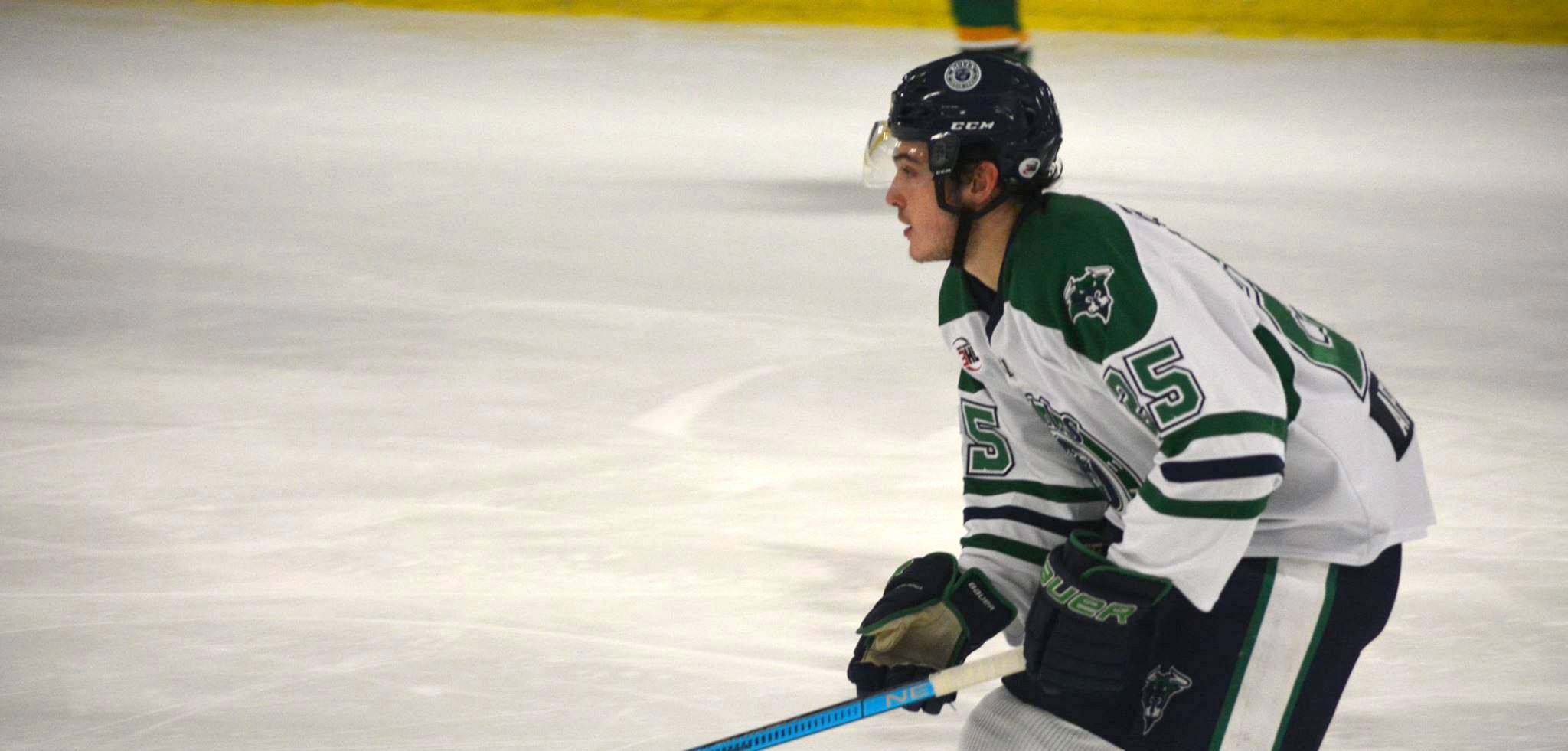 After playing his first two weekends for the Bulls away from the “Barn,” Carter Wagner (Lino Lakes, Minn./Minnesota Magicians) made himself right at home with his first goal in front of the home fans just five minutes into the contest. Right after Zach Wilson’s cross-checking penalty directly in front of the North Iowa bench, Peter Verstegen (Oshkosh, Wis./North Iowa Bulls) won the draw in the Granite City zone, with Wagner blasting one from the right-wing faceoff circle for the early lead.