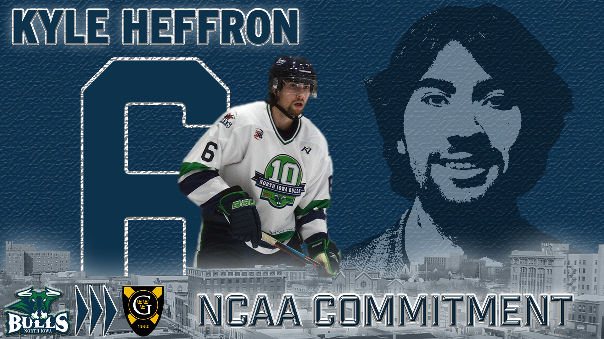 The North Iowa Bulls congratulate Kyle Heffron on his commitment to Gustavus Adolphus College, and wish him continued success as a collegiate student-athlete as he takes the next step in his hockey career.