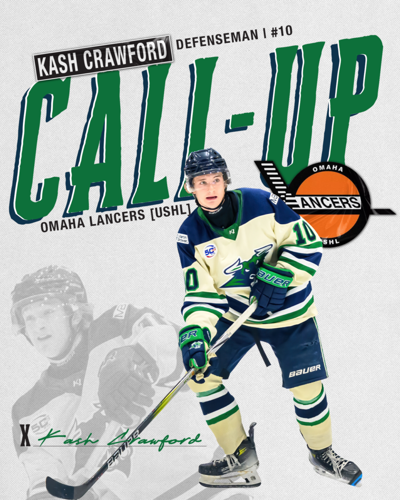 Mason City, IA- North Iowa Bulls defenseman Kash Crawford has been called up to the Omaha Lancers of the United States Hockey League, marking the second in-season call up for the North Iowa Bulls this season.