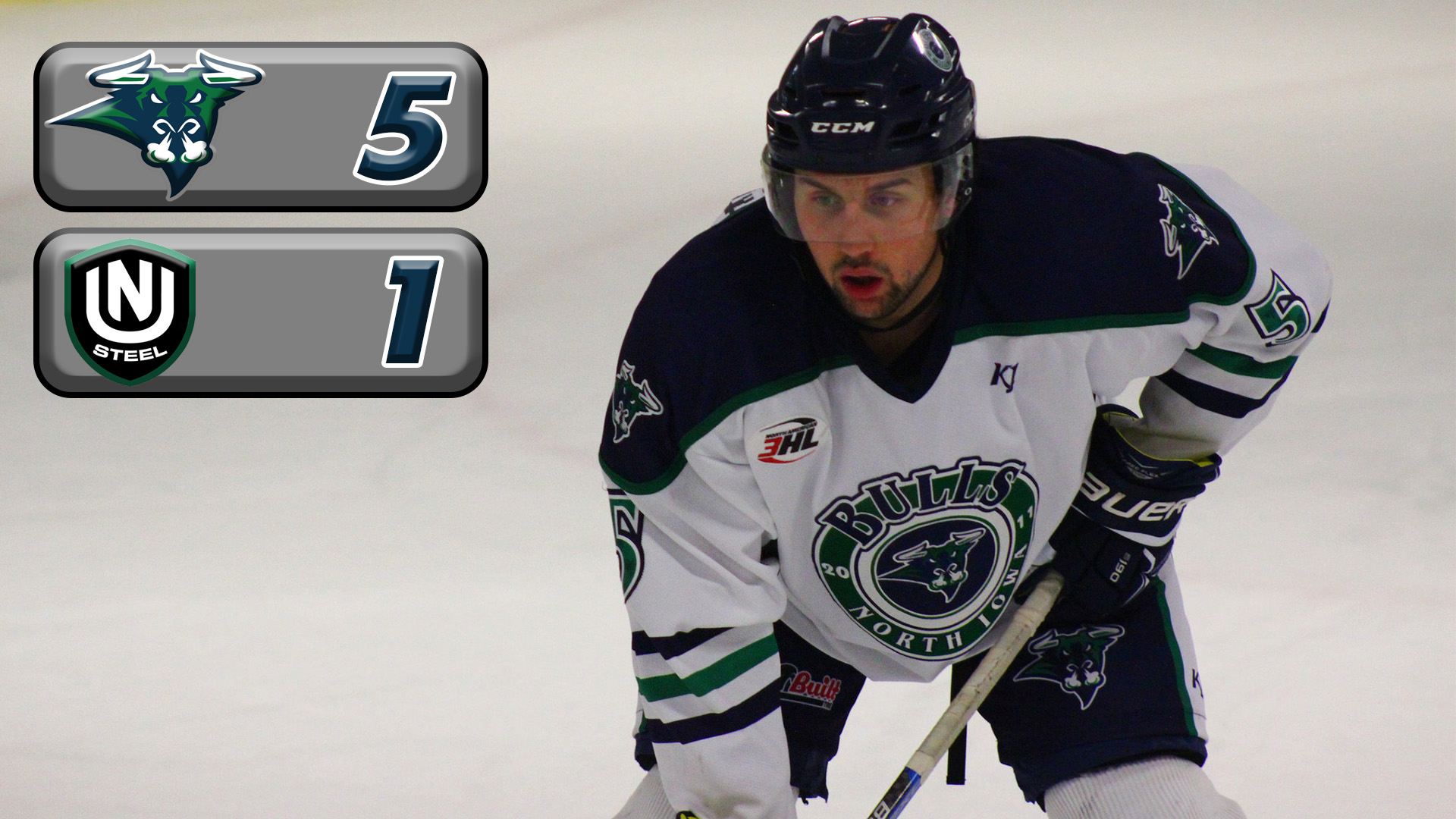After giving up the opening goal of the night, the Bulls took care of business for a 5-1 victory against the Steel, capping their first-ever sweep of New Ulm and pushing their total to 80 points in the Central Division standings. With the win, North Iowa finds itself just one game back of the Metro Jets in the overall NA3HL standings, though Texas and Binghamton will be tough to chase down as the regular season winds down Sunday.
